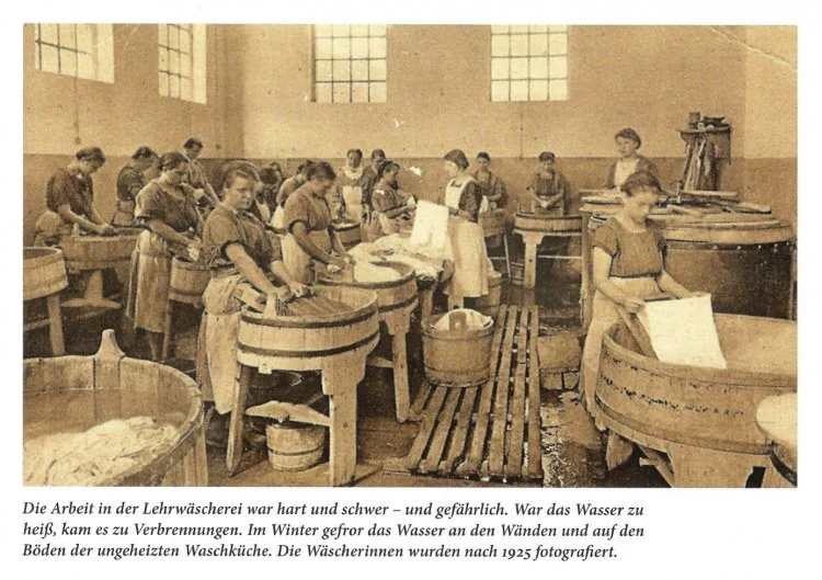 Gründung und Anfänge (1884-1920er): Kurz nach der Gründung der Diakonie Himmelsthür im Jahr 1884 wurde eine Wäscherei als Abteilung eröffnet. Die Wäsche wurde bis in die 1920er Jahre von Hand in Waschtrögen gewaschen.